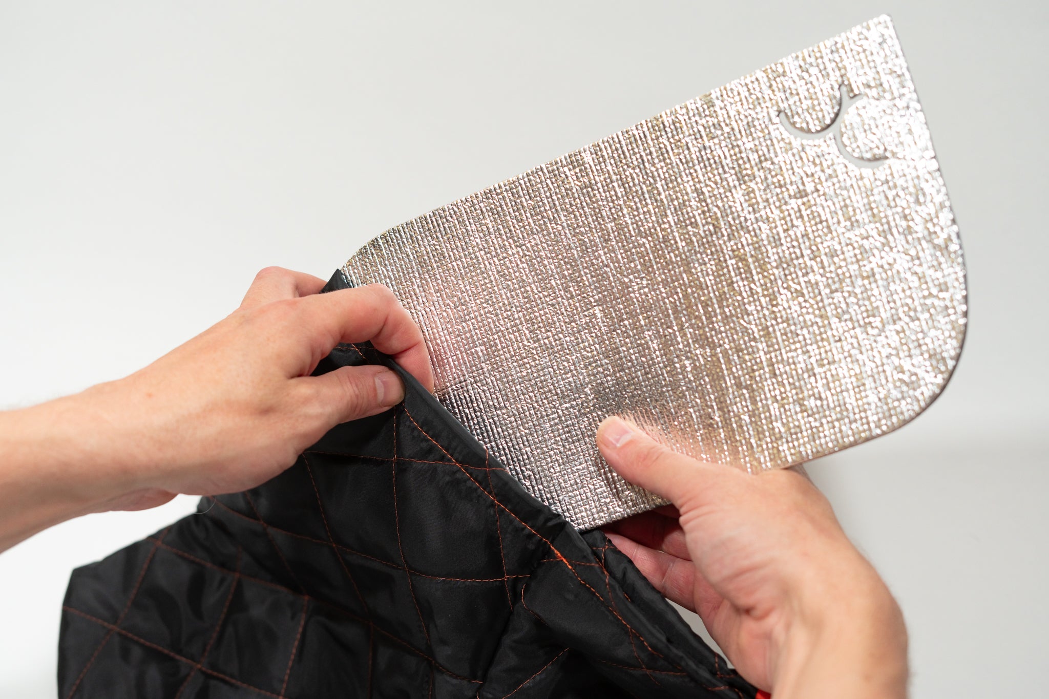 Ensiksi eristepalat sujautetaan pussukkaan kumpaankin "lahkeeseen".