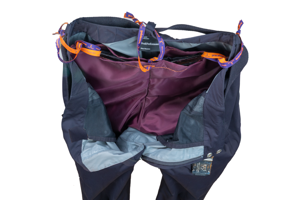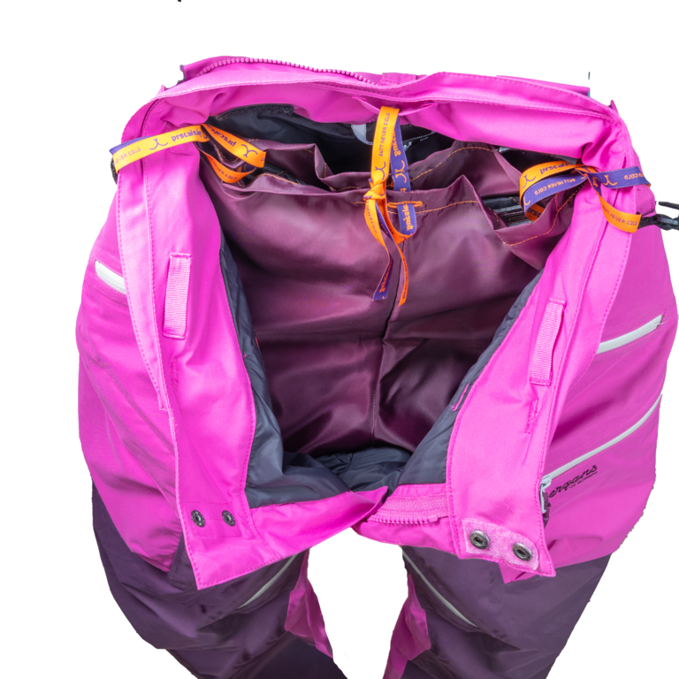 Om du känner att dina byxor inte sitter exakt där du vill ha dem, eller att "benen" inte sitter riktigt rätt, kan du justera byxornas position i byxorna genom att göra de tre snöröglorna stramare och lösare.
